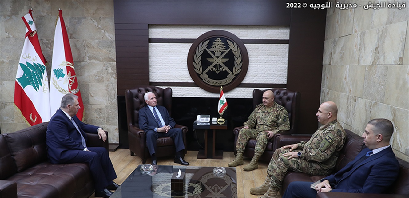 ستقبل قائد الجيش العماد جوزاف عون في مكتبه في اليرزة، عضو اللجنة المركزية لحركة فتح الوزير عزّام الأحمد يرافقه السفير الفلسطيني في لبنان أشرف دبّور، وتناول البحث الأوضاع العامة في لبنان والمنطقة.