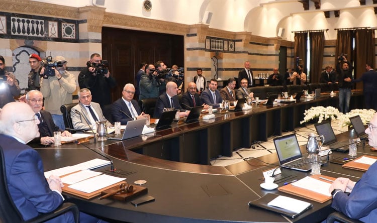 قررمجلس الوزراء تبني مضمون التعميم رقم /36/ تاريخ 5/12/2022 الصادر عن رئيس مجلس الوزراء لاسيما لجهة كيفية إصدار المراسيم عن حكومة تصريف الأعمال سنداً للمادة /62/ من الدستور، وطلب من الأمانة العامة لمجلس الوزراء إصدار مشاريع المراسيم وفقاً للصيغة التي حُدّدت في متن التعميم المذكور وإجراء التعديلات اللازمة على مشاريع المراسيم الواردة عند الإقتضاء، لاسيما في بناءات المشروع، كما وفي خانة التواقيع بحيث تشتمل فقط على تواقيع الوزراء المختصين وتوقيعين لرئيس مجلس الوزراء دون اي تواقيع أخرى.