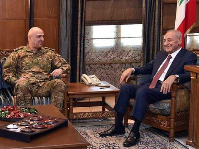 رفض رئيس مجلس النواب نبيه بري انتخاب قائد الجيش العماد جوزيف عون رئيسا للجمهورية. هو لم يقل “لا” بالمباشر في حديثه الصحافي الاخير الا انه رأى ان “انتخاب قائد الجيش يتطلب تعديلاً دستورياً أعتقد أن حصوله في الوقت الحاضر متعذر، إن لم يكن أكثر”. وتابع “لا الظروف الحالية تتيح حصوله، أضف عقبة أكثر تعقيداً تمنع تعديل الدستور في أي حال في ظل حكومة مستقيلة”. واضاف “ما حدث عام 2008 كان استثناء له دوافعه وظروفه الموجبة. في الدوحة أبرم الأفرقاء اللبنانيون تسوية وطنية وفق برنامج وقّعوه، أحد بنوده انتخاب رئيس للجمهورية سُمي بالاسم في نص الاتفاق. إلا أن البنود الأخرى في اتفاق الدوحة لم تكن أبداً أقل أهمية لأنها أعادت بناء المؤسسات. انبثقت من الاتفاق حكومة جديدة ومجلس نيابي جديد. قال بتأليف حكومة متفاهم عليها بين الموالاة والمعارضة وحجم كل منهما وبقانون انتخاب استغرق وقتاً طويلاً للاتفاق عليه هناك. هذه التسوية حتمت استعجال انتخاب رئيس جديد للجمهورية”.