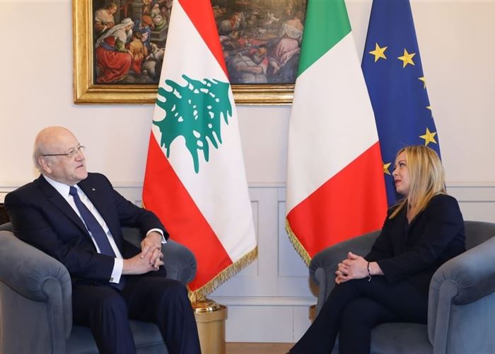 غرّدت رئيسة وزراء إيطاليا جورجيا ميلوني عبر حسابها على “تويتر” قائلاً: “أكدّت لرئيس الحكومة اللبنانية نجيب ميقاتي دعم إيطاليا لأمن واستقرار لبنان، كما أننا نقدّر كثيراً مشاركتنا ضمن قوات اليونيفيل الموجودة هناك”.وأضافت: “كذلك، ناقشت مع ميقاتي سياسات الهجرة وكيفية زيادة تعاوننا مع لبنان في مجالات الإقتصاد والطاقة”.