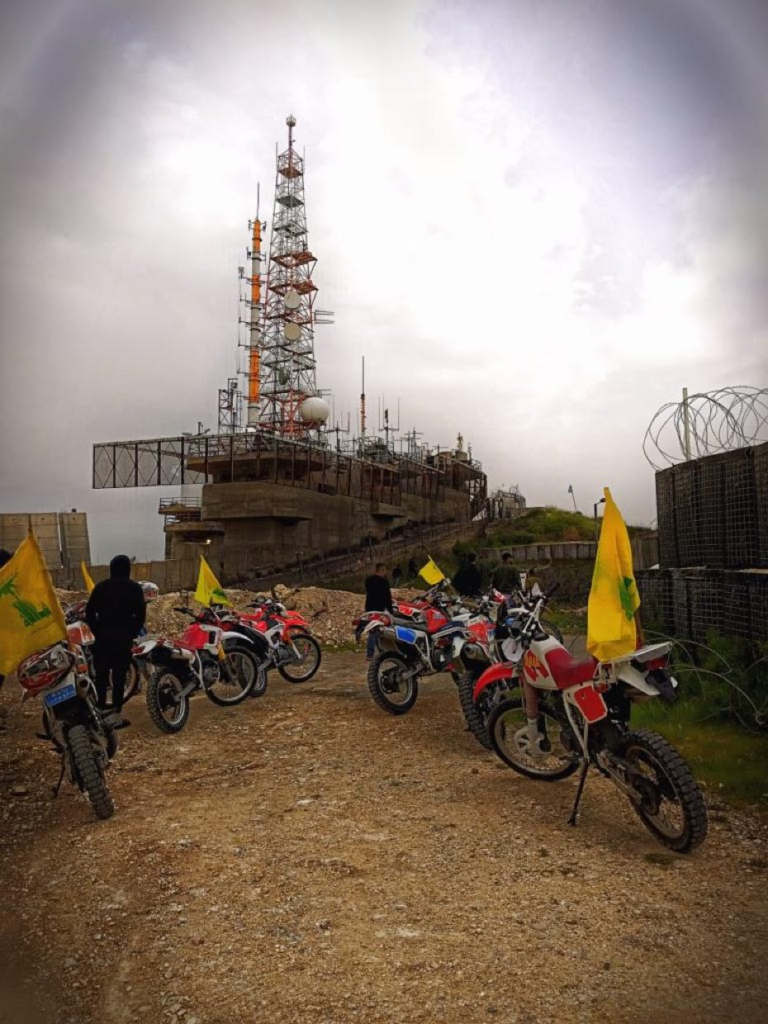 نشر مراسل قناة “المنار” في الجنوب الزّميل علي شعيب صورة عبر حسابه على “تويتر” تُظهر دراجات نارية مُحملة بأعلام “حزب الله” أثناء تمركزها قرب مركز عسكري إسرائيليّ عند الحدود بين لبنان وفلسطين المحتلة.