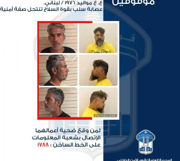 لذلك، وبناء على إشارة القضاء المختص، تعمم المديرية العامة لقوى الامن الداخلي صورتهما، وتطلب من الذين وقعوا ضحية أعمالهما، الاتصال على الخط الساخن التابع لشعبة المعلومات ۱۷۸۸ – والتوجه الى فرع التحقيق في مبنى الشعبة المذكورة الكائن في ثكنة المقر العام (ثكنة الشهيد ابراهيم الخوري) – الاشرفية.