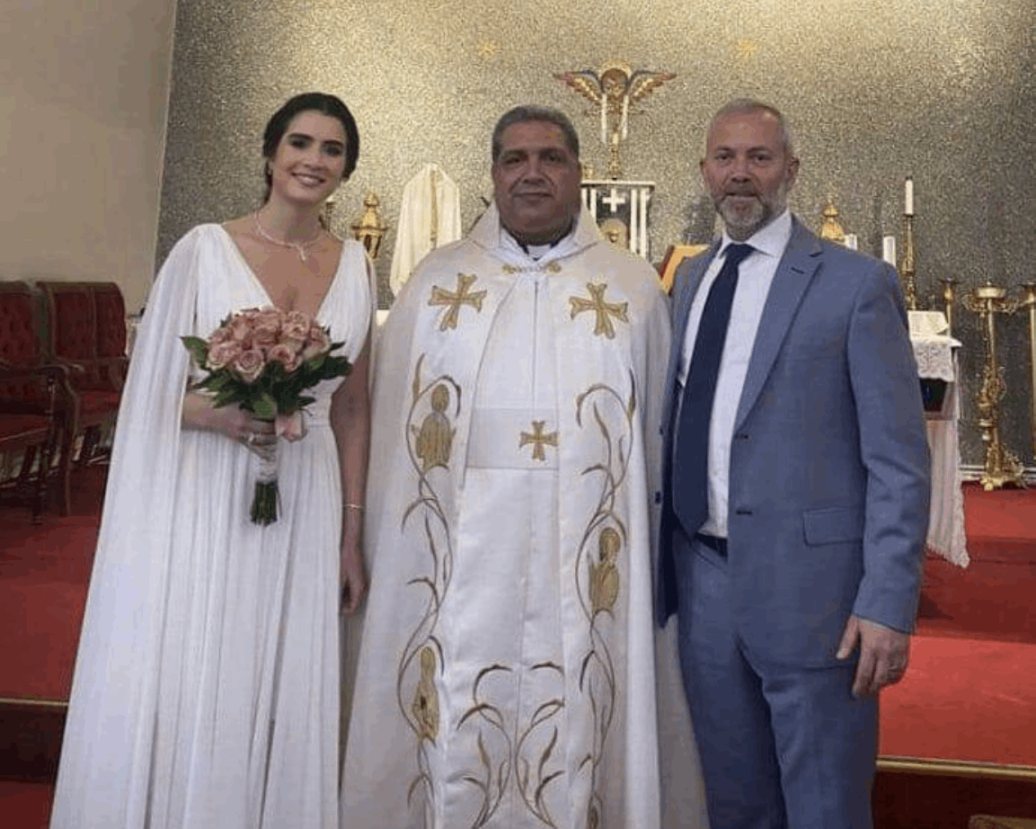 وانتشرت صور على مواقع التواصل الاجتماعي من الحفل، حيث ظهر مع عروسه وهما يقطعان قالب الحلوى، إضافة إلى صور من داخل الكنيسة.