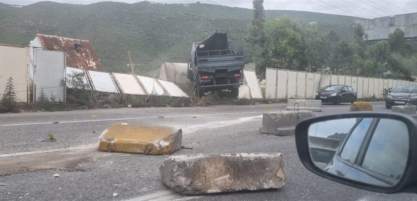 آليّة عسكريّة تصطدم بفاصل إسمنتيّ