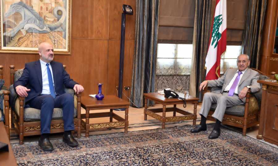 إستقبل رئيس مجلس النواب نبيه بري في مقر الرئاسة الثانية في عين التينة وزير الداخلية والبلديات في حكومة تصريف الأعمال بسام المولوي حيث جرى عرض للأوضاع العامة لاسيما الأمنية منها.