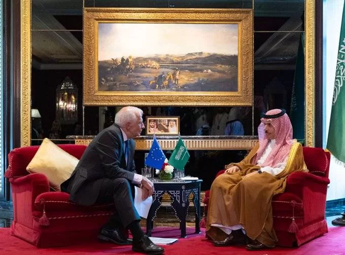 التقى وزير الخارجية السعودي فيصل بن فرحان ، اليوم السبت ، بمسؤول السياسة الخارجية في الإتحاد الأوروبي جوزيف بوريل، وذلك على هامش حوار المنامة 2023 المنعقد في مملكة البحرين.