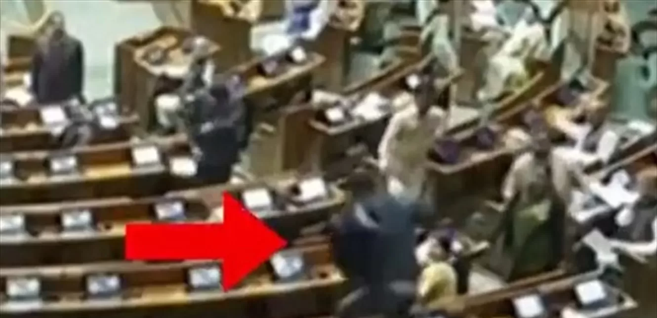 وأظهرت لقطات بثتها محطات تلفزيونية رجلا يرتدي سترة سوداء وهو يقفز من منطقة الزوار إلى منطقة جلوس النواب وصعد فوق الطاولات فيها.