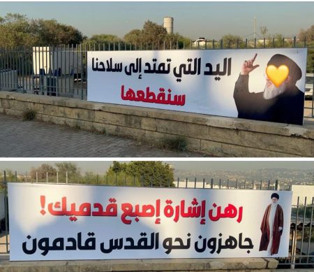 تناقل ناشطون عبر مواقع التواصل الإجتماعي صورة للافتات جرى تعليقها عند مدخل مطار رفيق الحريري الدولي، وقد حملت إحداها صورة للمُرشد الإيراني الأعلى علي خامنئي وأخرى لأمين عام “حز. ب الله” السابق السيــ.ــد حسن نصر. الله.