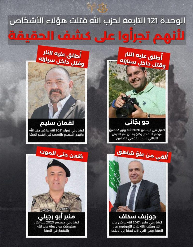 “حـــــزب الله” اغتال 4 شخصيات لبنانية.. إسرائيل تزعم وتنشر!